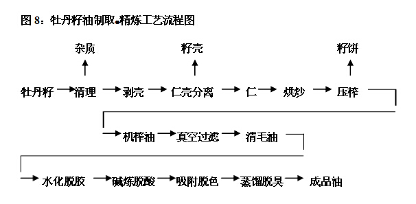 牡丹籽油:由牡丹籽提取的植物油是中國特有的木本堅果油,因其營養豐富而獨特,又有醫療保健作用,被有關專家稱為“世界上最好的油,”是植物油中的珍品,也是中國獨有的健康保健食用油脂。牡丹籽是牡丹植株的精華結晶,傳承了牡丹本身具有的一切特性外,它更有自己獨特的醫藥和營養成分,牡丹種子是受果殼和種殼雙層保護的堅果,具有天然的“長壽”基因。經油脂權威部門江南大學和中國糧油質量監督檢驗中心等多家專業機構測試表明,牡丹籽油不飽和脂肪酸含量達90%以上,尤其難能可貴的是其中多不飽和脂肪酸——亞麻酸(屬w—3系列)含量超過40%,是橄欖油的140倍。由牡丹籽提取的植物油是中國特有的木本堅果油,因其營養豐富而獨特,又有醫療保健作用,被有關專家稱為“世界上最好的油”。牡丹籽油是迄今為止所發現的油脂中最適合人體營養的油脂,是所有食用油總營養價值最高,成份結構最合理的。含有豐富的多不飽和脂肪酸,其營養價值遠遠超過被稱為“人類健康之油”橄欖油,亞麻酸含量是橄欖油的200多倍。多項指標也都高于其他油種。又不易氧化沉積在人體血管壁、心臟冠狀動脈等部位。正是這些成分使其在醫學和營養上發揮了重要作用而成為理想的食用油。不夸張地說?牡丹籽油的營養和保健作用是其它食用油無法比擬的。牡丹籽油中,VA、VE、尼克酸、胡蘿卜素、不飽和脂肪酸含量豐富,對皮膚具有極好的營養護理作用,可明顯改善皮膚表皮細胞循環功能,促進皮膚毛細血管的微循環作用,抑制脂質過氧化作用的進行,改善新陳代謝,延緩皮膚衰老過程,有抗皺、保濕增白作用,使用后皮膚光滑輕松,對黃褐斑、皮膚老化皺紋、皮膚角質硬化脫皮、皮膚皺裂、皮膚干燥有一定治療效果。