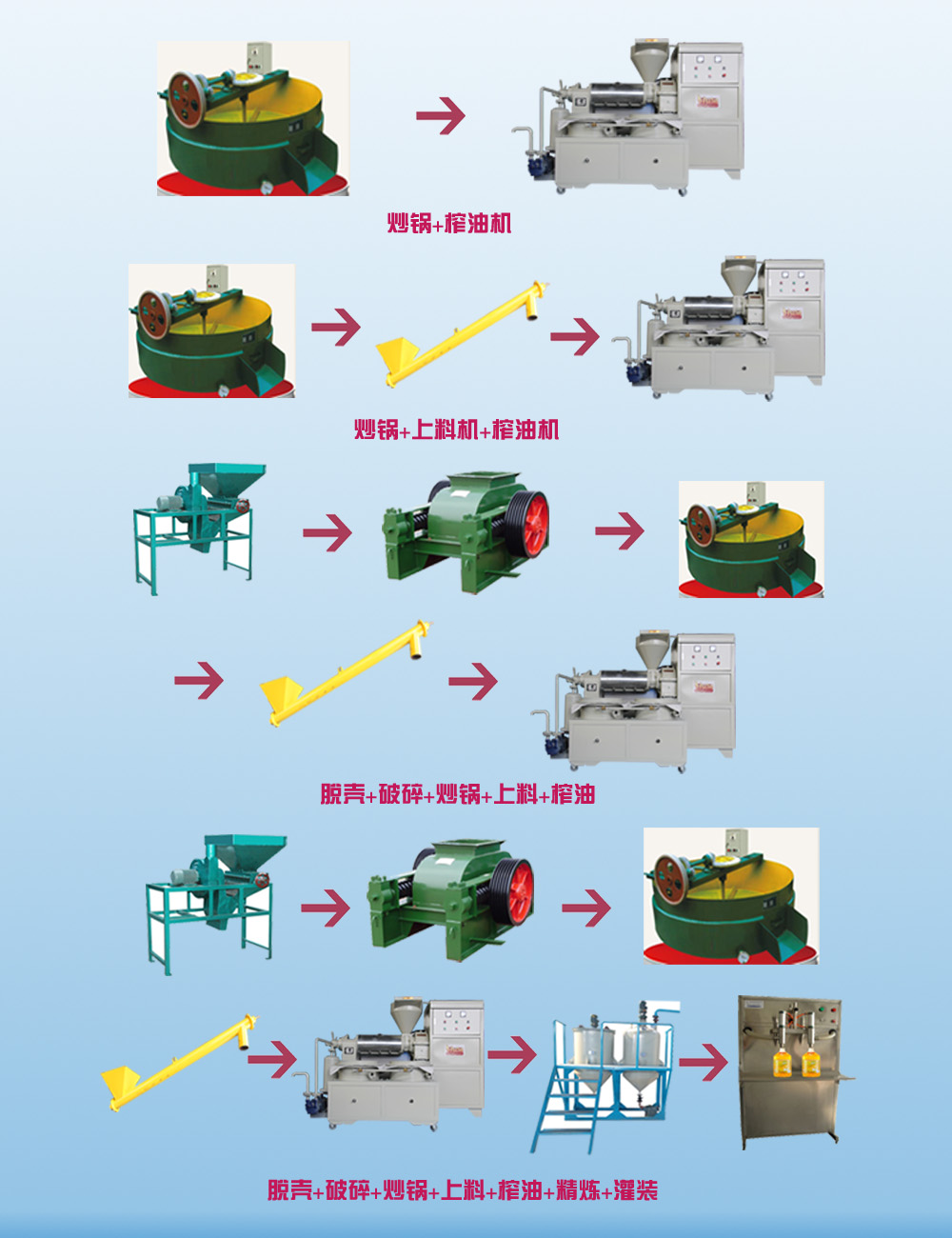 我廠生產(chǎn)的螺旋榨油機(jī)采用物理壓榨、適用于壓榨菜籽、大豆、花生、棉籽、葵花籽、桐籽等多種植物油料。具有投資少、配套簡(jiǎn)單、易于維修、適應(yīng)性強(qiáng)、出油效率高等優(yōu)點(diǎn)。對(duì)于中、小油廠和鄉(xiāng)鎮(zhèn)個(gè)體企業(yè)都很適用。